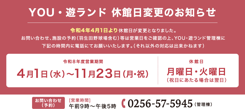 ※料金についてはYOU遊ランド管理棟にてお支払い下さい。